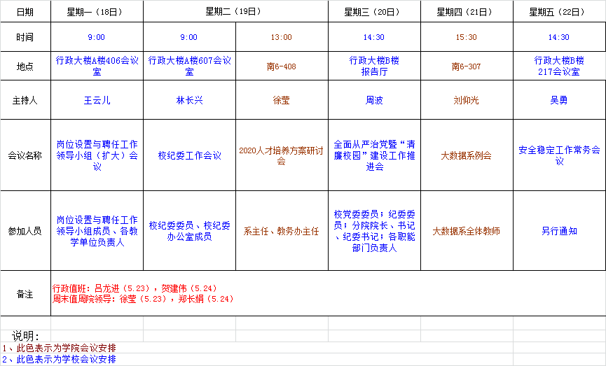 关于公布第13周主要会议安排的通知