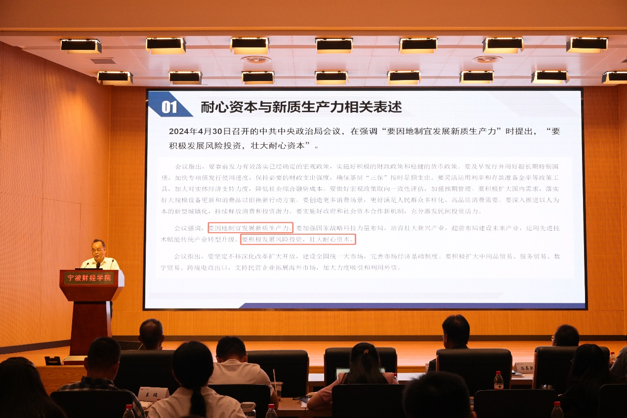 在专题报告环节,浙江工商大学钱水土教授深入剖析了数字智能时代耐心资本与新质生产力之间的紧密联系,为与会者提供了全新的思考视角。宁波市金融办研究室主任陈嘉毅则通过详实的数据与生动的案例,全面展示了宁波市在数字普惠金融领域的卓越成就与宝贵经验。浙大宁波理工学院马翔教授从金融业高质量发展与城市动能结构转换的全新维度分享了其最新的研究成果。宁波跨境堡科技有限公司董事长陆海平带来了跨境电商物流金融保险领域的创新实践案例,生动诠释了数字金融在实体经济中的广泛应用与深远影响。