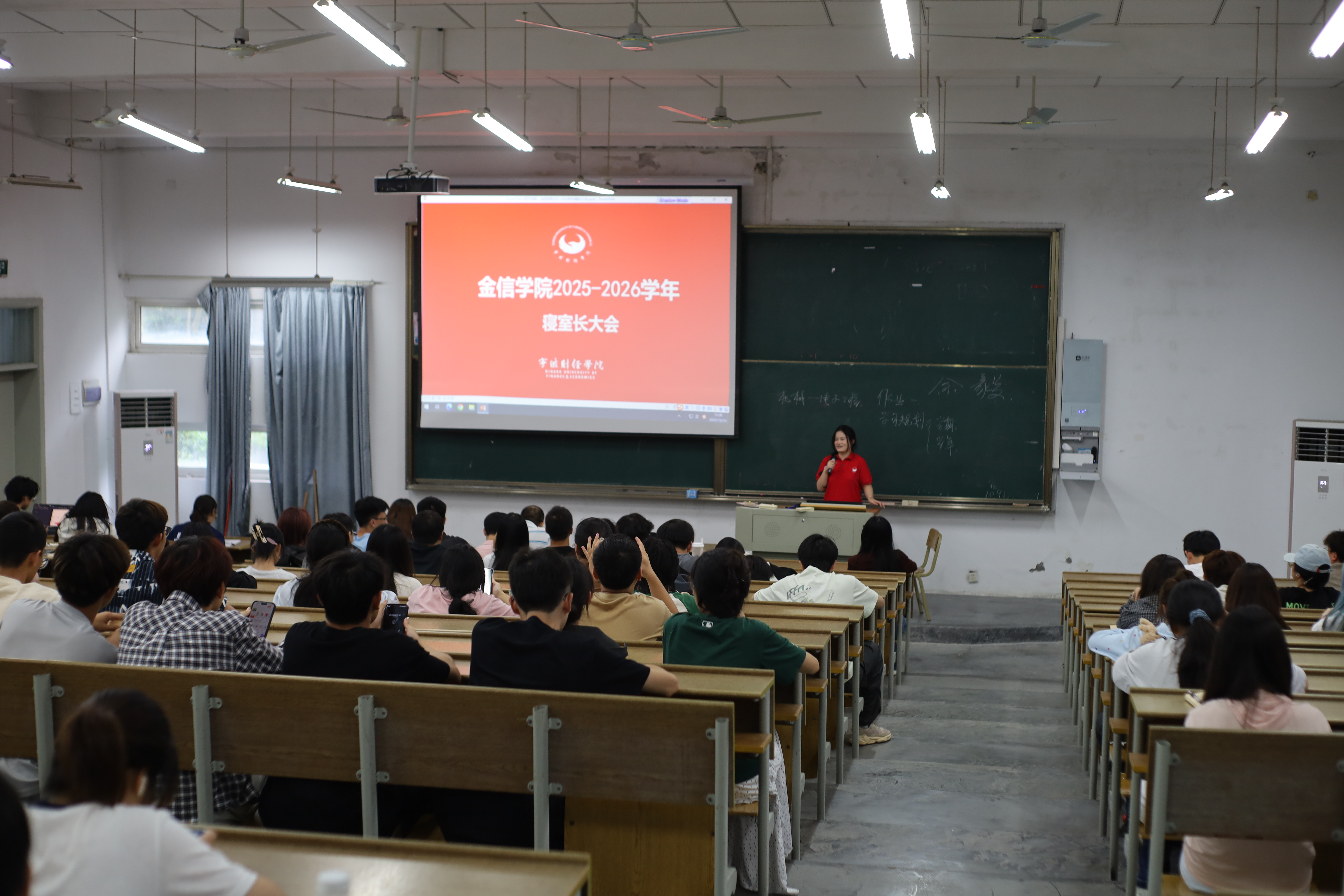 10 月 16 日下午,我院 2025-2026 学年第一次寝室长大会在杭州湾校区 HJX11j1 召开。学工办主任翁志积、公寓管理中心负责老师俞淑燕出席会议,24、25 级全体寝室长参会。