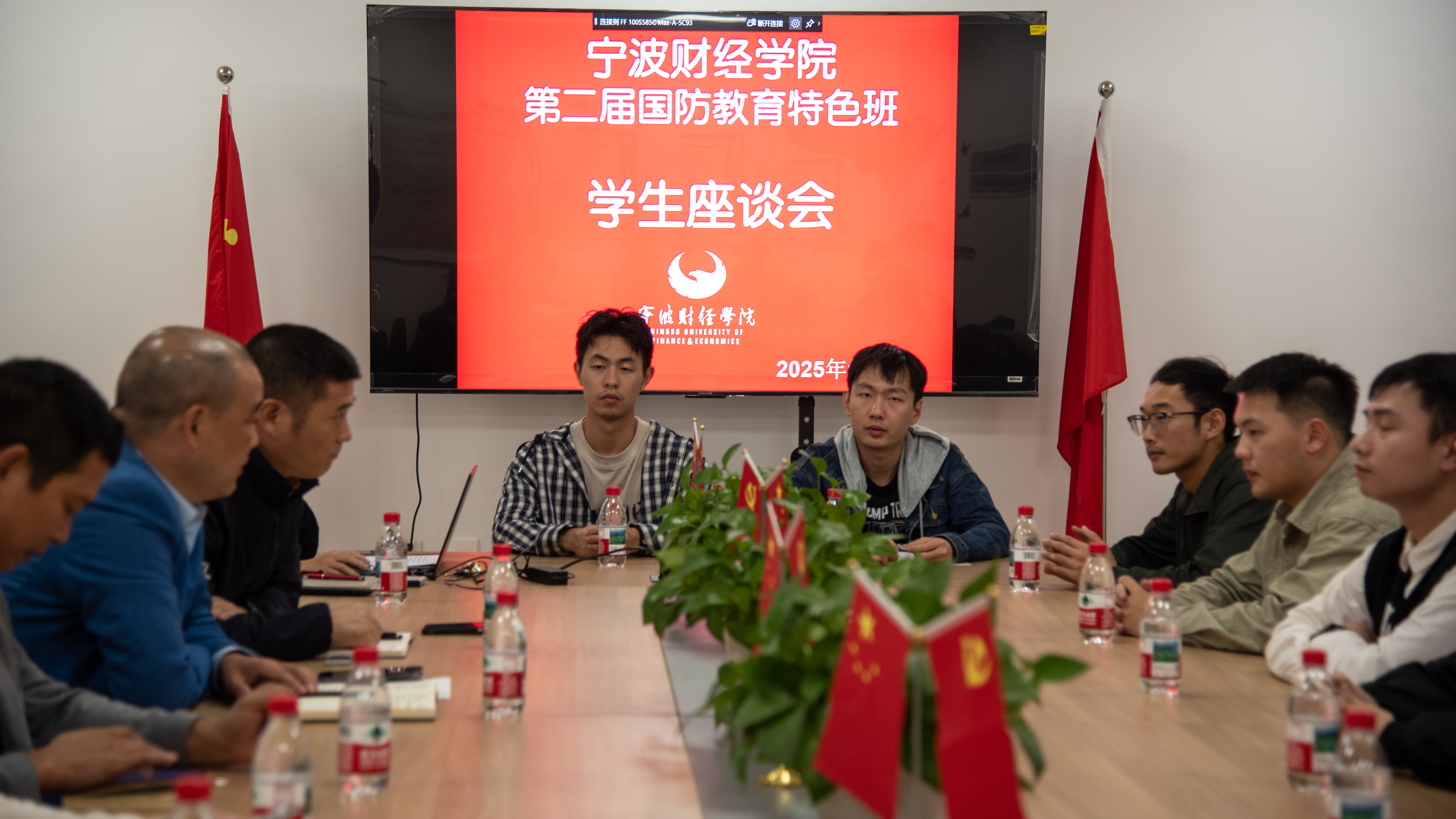皇甫贤昌对国防班地位和作用、国防班与教导队关系、首届国防班今年两轮带训出色表现作了说明,对《宁波财经学院国防教育特色班课程建设改革实施方案》进行了解读,希望国防班作为教导队一员,加强融合、刻苦训练、服从命令、听从指挥,为学校国防教育和军训工作作出应有贡献。第二届国防班代表鲍宗岑、张文涛、叶建澳、徐子健与教导队代表黄鑫、徐榕蔓分别就部队历练、带训感受、队伍融合、能力提升等展开交流,对强化队伍建设提出了建设性意见。徐雁峰介绍了国防班开设的缘由,进一步梳理了国防班与教导队之间的关系与发展定位,希望新一届学员要坚定理想信念,强化责任担当,在学习、训练和日常管理中严于律己,不断提升综合素质,努力成长为政治过硬、素质全面的学校国防教育后备力量。