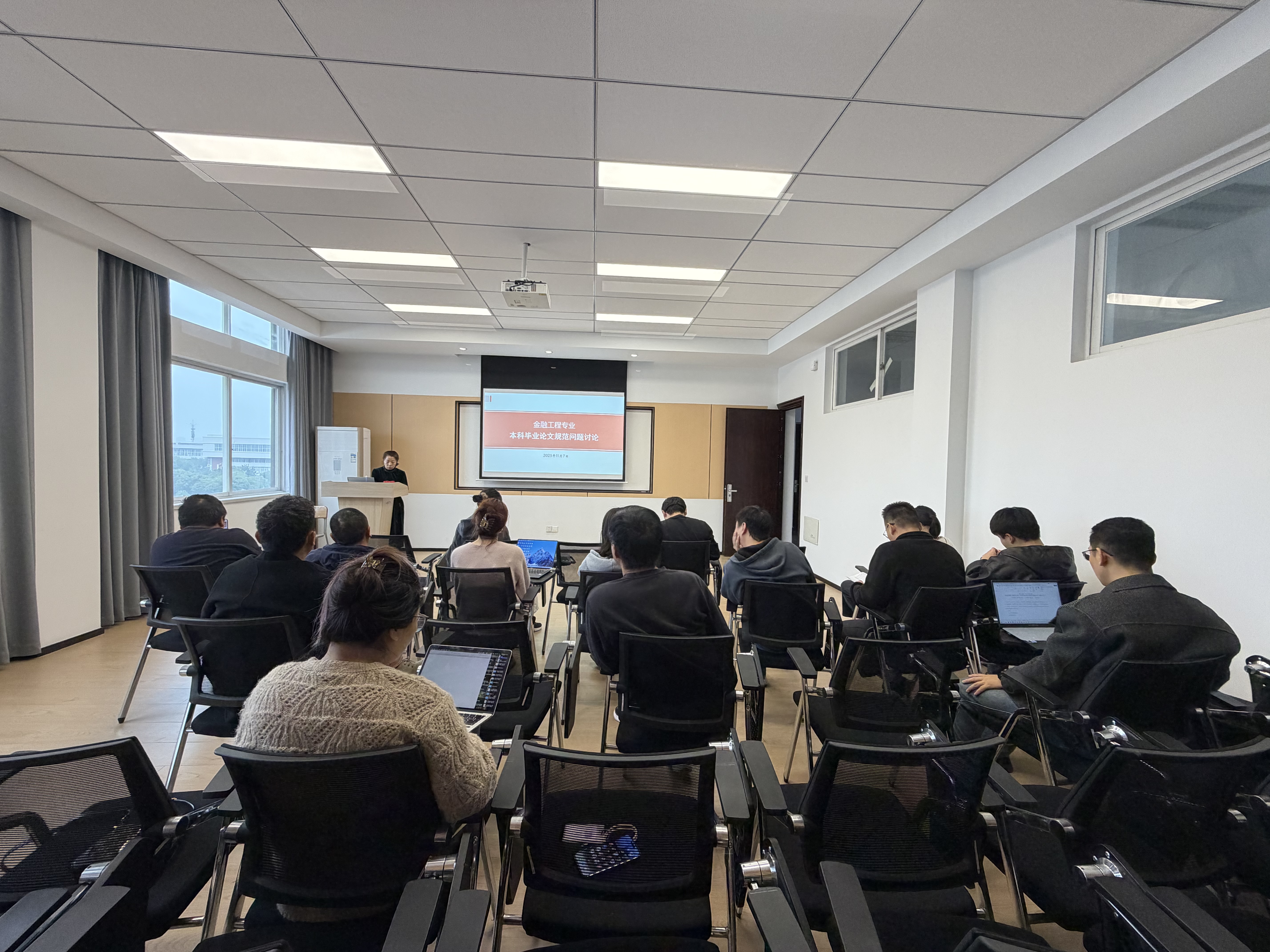 2025年11月7日,我院金融工程系于南五5-504室组织召开“本科毕业论文规范工作”专题研讨会。会议围绕毕业论文规范要求、人工智能工具使用与查重、评审标准等议题进行了深入交流。活动由系主任毕建欣主持,全系老师参加。