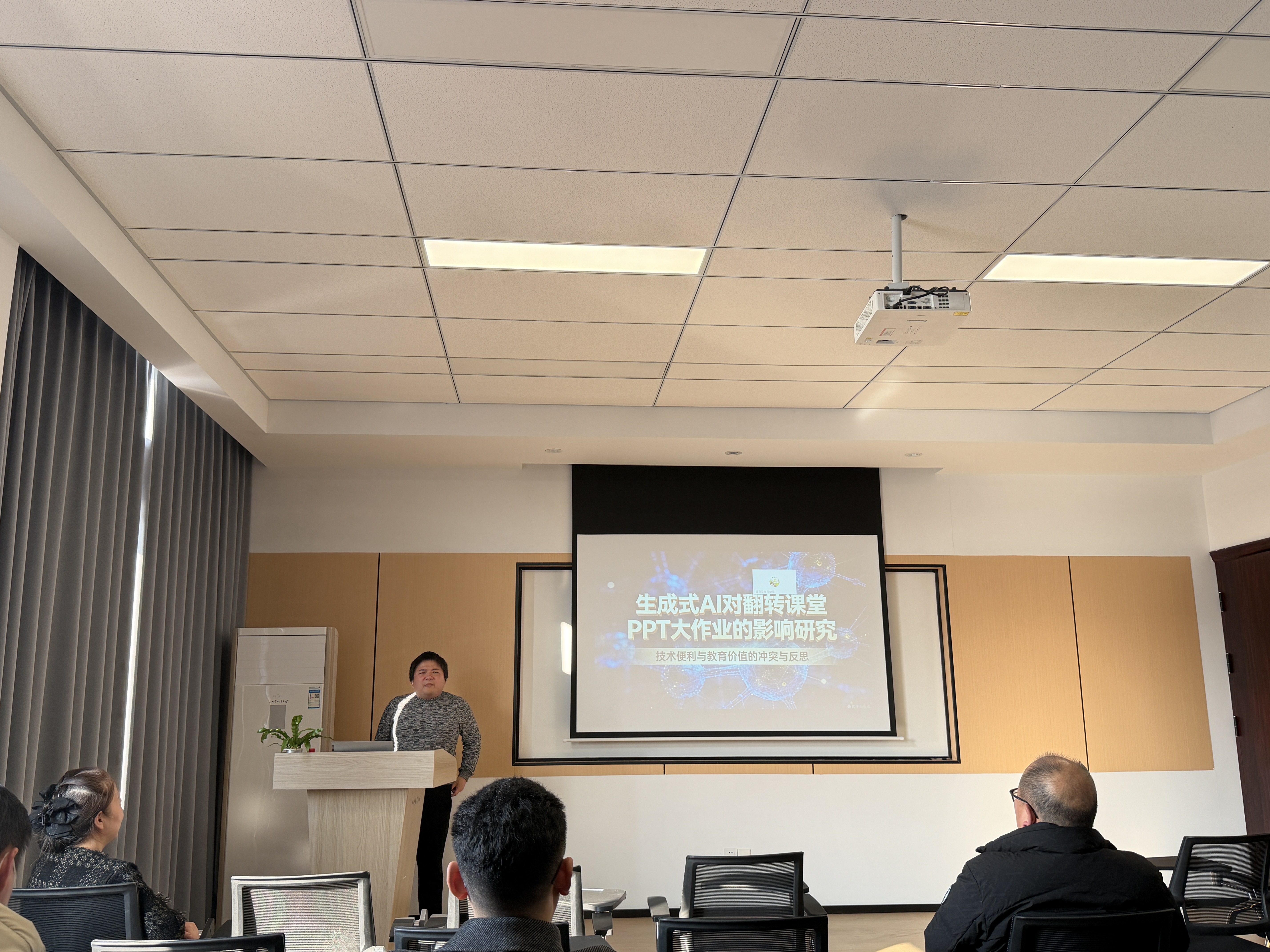 接着,三位教师代表进行主题分享。章志平汇报了课程思政的相关文件与政策,强调课程教学需要重视思政教育、强化价值引领;王博汇报了“生成式AI对翻转课堂PPT大作业的影响研究”,构建生成式AI赋能、以翻转课堂为载体、思政教育贯穿始终的新型教学模式;张文婷汇报了“金融工程课程思政教学设计方案”,从思政融入、教学设计、教学方法、评价体系等多个角度进行了分析。