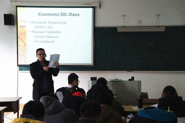 2016年11月21日至11月24日期间,第三期双语课程教师培训班开展第一次校内观摩“听评课”活动。观摩课程分别为陈娓娓老师的《国际市场营销》、陈玉越老师的《国际金融》、马骏老师的《国际结算》。