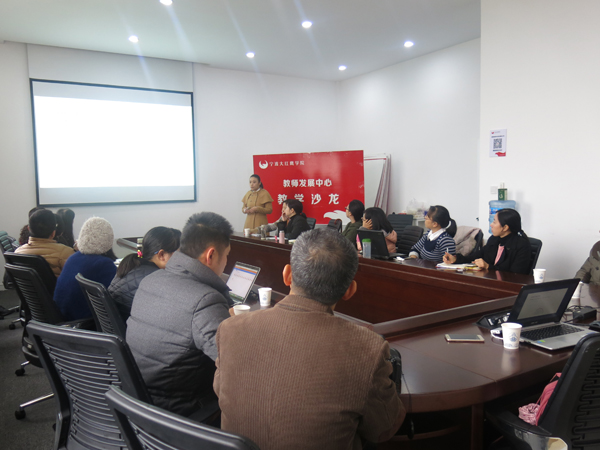 2017年1月5日中午11点30分,教师发展中心第四十三期教学沙龙在9号教学楼412室室举行。本次沙龙的主讲嘉宾为我校机电学院教师陈文颖,交流主题为“项目化+翻转课堂” 的实践探索。来自全校的30余位教师参加了此次沙龙,沙龙由教师发展中心黄莉老师主持。