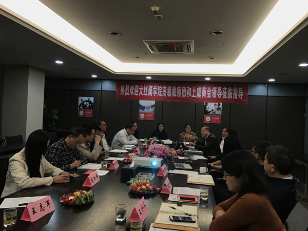4月27日下午,在教师发展中心副主任王志军的带领下,我校高级应用型教师团队一行走进宁波上虞商会与企业代表进行交流座谈,商会会长谢建江,副会长夏建镐等热情接待了教师团队,并出席座谈会。活动在浙江天元十杰装饰工程有限公司会议室举行。
