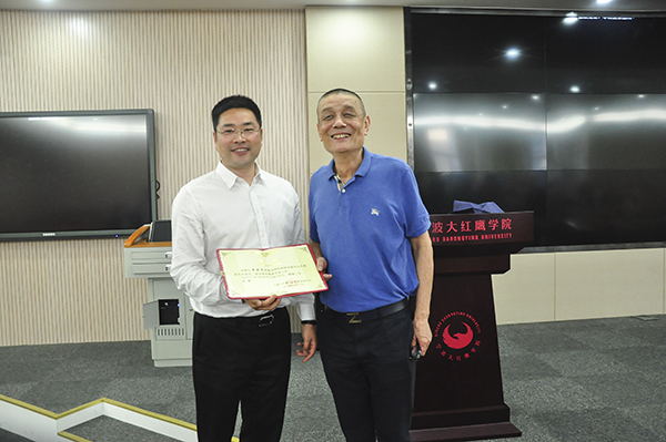 许锁迪代表学校对李教授来我校作学术报告表示衷心感谢,并向他颁发了学校教师发展中心专家聘书。