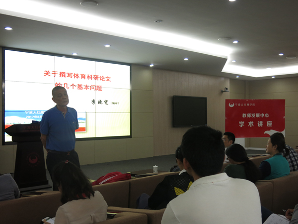 5月12日下午,国家体育总局体育科学研究所李晓宪教授应邀来我校作题为“关于撰写体育科研论文的几个基本问题”的学术报告。报告会由副校长许锁迪主持,我校公共体育部、教师发展中心及各二级学院有关教师参加了报告会。