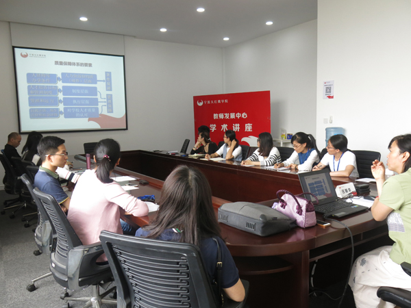 5月25日下午,教师发展中心学术讲座在9号教学楼412室举行,本期讲座邀请了教学质量评估处副处长任丽华主讲,主题为《教学质量监控体系的构成与实施》,来自全校的二十余名教师参加了本次讲座,讲座由教师发展中心黄莉主持。