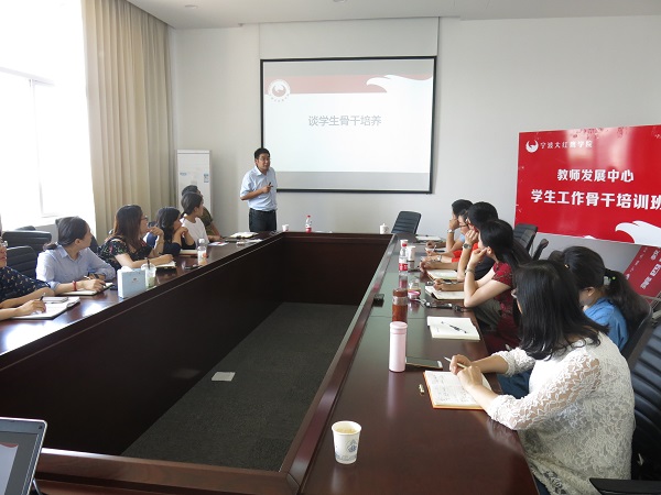 培训会上,吴勇老师首先向学员阐述了培养学生骨干对我们的意义,他指出,培养学生骨干是对我们能力的检验,是对我们的文化的传承,是对我们工作的支撑。随后,吴勇老师从新时期的学生观说起,与在场学员探讨了学员与学生干部之间的关系、学生干部的利益与发展、以及如何进行利益驱动。着重剖析了我们需要怎样的骨干,骨干如何培养的两个问题,强调我们应颠覆观念、把握标准、坚持原则,把学生骨干的培养当做人才培养的重要环节;要遵照“靠得住、能力强、作风正”的学生干部标准,坚持让思政工作贯彻始终,精确培养与因材施教相结合,促进团队“自”造核心球员。