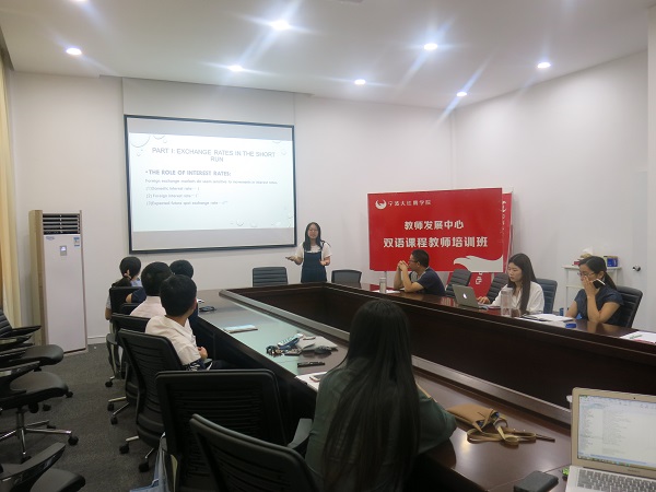在说课环节结束后,在座的教师纷纷围绕各自汇报内容展开提问交流,讨论气氛热烈。通过这种实践汇报交流的方式,使得学员们互相借鉴启迪,对双语课程的设计有了更为深入的理解,提升了学员们的双语教学能力和双语课堂质量。