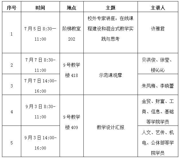 (1)教学设计汇报包括学员汇报、专家提问及学员回答,其中学员汇报不超过10分钟;每位学员针对自己所授的某门课程进行整体教学设计;