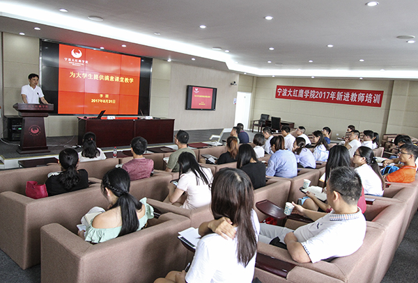 孙惠敏首先对新教师的加入表示热烈欢迎,她说,感谢新教师选择宁波大红鹰学院,为学校注入全新的活力。学校也将为新教师的专业成长搭建平台,努力创造各种有利条件,确保大家能够舒心工作、幸福生活。接着,她结合自己的工作经历和个人感悟,列举数据,饱含深情地向新教师介绍了我校办学17年来的跨越式发展历程、鲜明的办学特色和取得的良好社会声誉。最后,孙校长对新教师提出了殷切期望和要求。她希望新教师同心同德、同舟共济,尽快融入学校文化,要以“立德树人”为本,教学科研并举,勇于改革创新,不断激发自身的内动力,在工作中成就自己,不断谱写新的篇章。