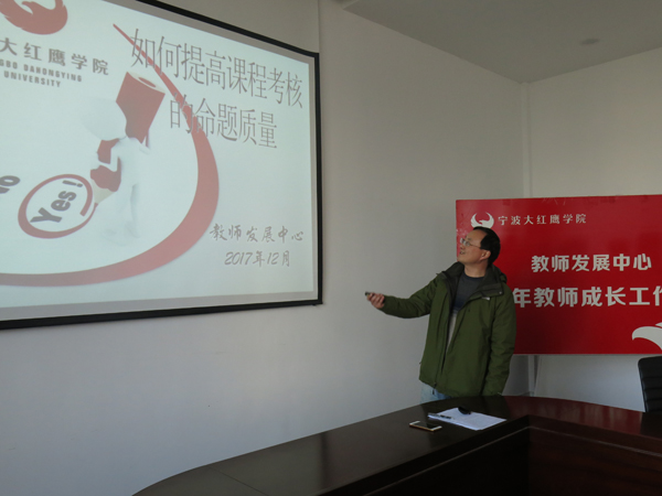 2017年12月21日下午,“如何提高课程考核的命题质量”的主题学术报告活动如期在在9号教学楼教师发展中心412研讨室举行。第九期青年教师成长工作坊全体学员、教师发展中心相关人员参加了活动,活动由班主任王志军主持。