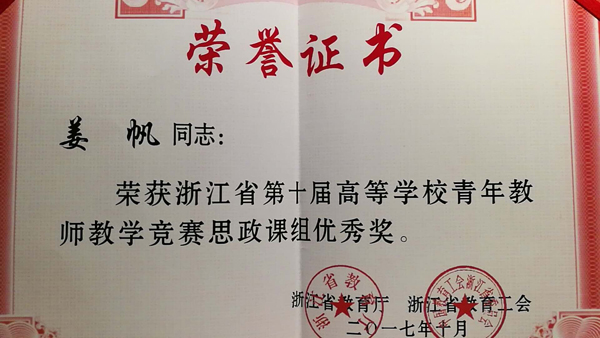 姜帆,女,法学博士,马克思主义学院负责人。浙江省师德先进个人,宁波市优秀思政理论课教师,校优秀青年教师、师德标兵、最受师生喜爱的书记、我心目中的好老师、党员示范岗先进个人。