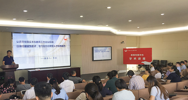 9月28日下午,学校教师发展中心组织全国教育大会和新时代全国高等学校本科教育工作会议精神专题学习会,副校长李羽应邀为首期课程负责人研习班全体学员作题为“认真贯彻落实全国教育大会及本科教育工作会议精神以课程建设为重点 奋力提升应用型人才培养能力”的报告。