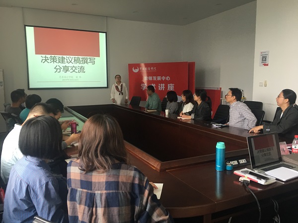 10月16日下午,教师发展中心学术讲座在南教2-412研讨室举行。本次讲座由艺术设计学院梁伟副教授主讲,主题为《决策建议稿撰写要点分享》,来自艺术设计学院和其他学院的相关老师共30余名参加。讲座由教师发展中心黄莉老师主持。