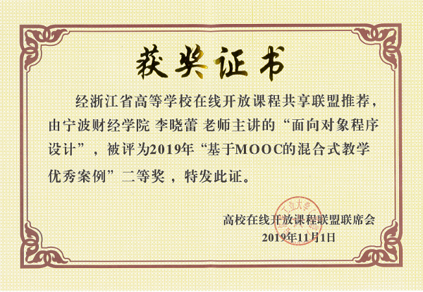 李晓蕾 2019年“基于MOOC的混合式教学优秀案例”全国二等奖获得者