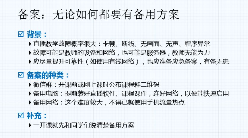 (5)如果选择直播,一定要有备用方案: