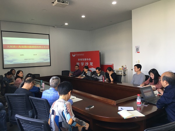 10月12日下午,教师发展中心第八十一期教学沙龙在南教2-412研讨室举行。本次沙龙由马克思主义学院院长王臣申教授主讲,主题为“大阅读:人文类一流课程的核心要素”,来自全校共20余名老师参加。沙龙由教师发展中心王志军主任主持。