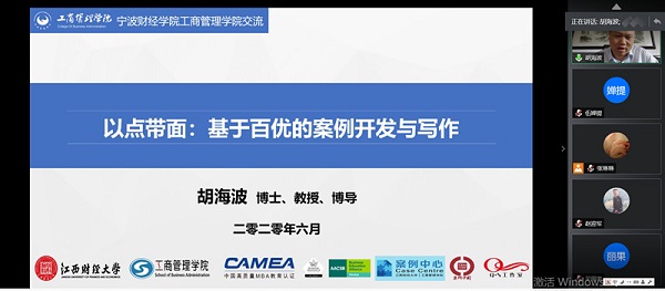 2020年6月4日下午,井冈学者特聘教授、江西省百千万人才工程人选、教育部学位中心首批优秀案例教师、澳大利亚新南威尔士大学(UNSW)访问学者,博士、教授、博导江西财经大学工商管理学院院长胡海波,为工商管理学院教师作题为“以点带面:基于百优的案例开发与写作”科研讲座,讲座以腾讯会议形式开展。本次讲座由工商管理学院院长赵迎军教授主持,副院长伍婵提、副院长邵际树以及青年教师教科研骨干班全体成员参加。