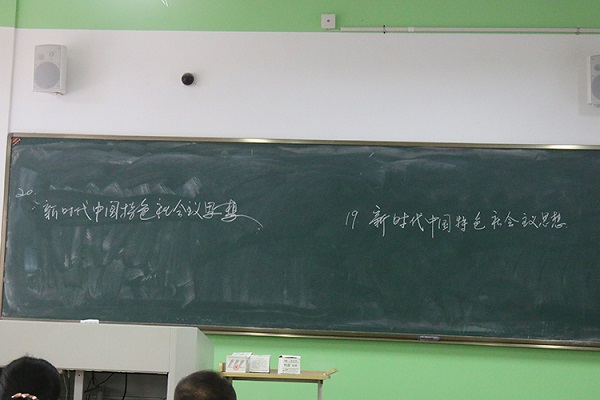 随后,王春儿宣读了比赛规则,板书的书写内容为“新时代中国特色社会主义思想”。比赛中,各位参赛选手通过抽签决定上场顺序,两两一组完成书写。老师们的字体或清秀端庄或雅致工整,或遒劲有力或韵味十足,无不展现着书写者的个性。