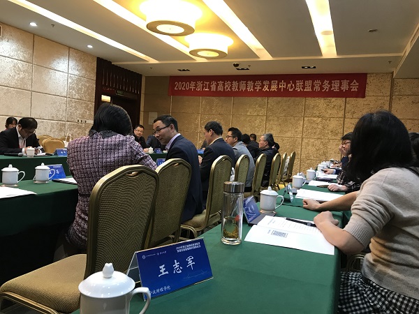 10月24日上午,2020年浙江省高校教师教学发展中心联盟常务理事会在浙江大学紫金港校区圆正•启真酒店阳明厅顺利召开。会议由联盟秘书长、省高培中心常务副主任叶志雄主持,来自省内不同高校的教务处、教发中心负责人等26位代表参加会议,我校教师发展中心主任王志军也应邀参会。