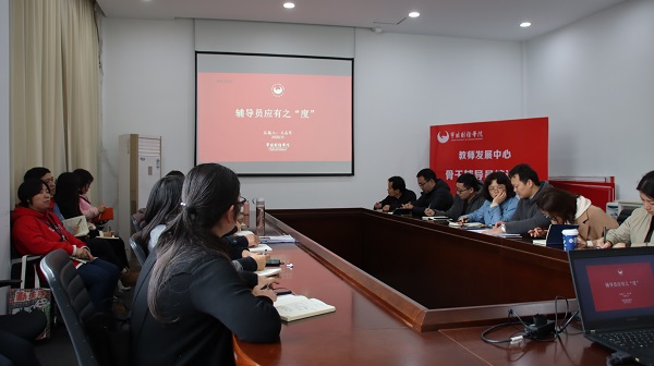 为加强辅导员队伍建设,全面落实立德树人根本任务,推动队伍持续健康发展,11月26日下午,骨干辅导员培训班专题讲座在南教2-412研讨室举行,教师发展中心主任王志军应邀作“辅导员应有之‘度’”讲座,全体骨干辅导员参加,讲座由邵霞琳老师主持。