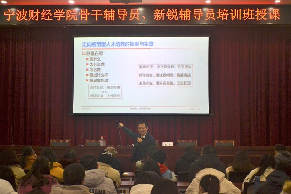 讲座中,吴老师立足应用型人才培养,全面介绍了应用型人才培养的背景、内涵、方法及最终目标。他解读了我校在应用型人才培养上的实践方式,从学校办学定位到学科专业体系建设,再到学校双创价值引领,让大家进一步了解学校近几年的发展历程与所获成就。随后,吴老师结合辅导员的主要工作职责以及自身的教学经历,阐述了作为一名辅导员该如何投入到学校应用型人才培养的实践中去,他认为,辅导员工作的特殊性决定了我们要不断更新知识,用心思考、用心做事、用心提升,助力为学生赢得人生、为学校打响声誉。