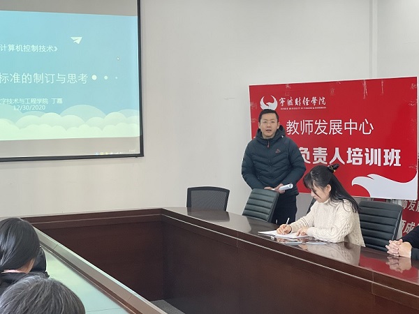 此次汇报研讨会由丁嘉和方颖松分别就《<计算机控制技术>课程标准的制订与思考》和《课程标准的实践与反思——以<跨境电子商务基础与实践>为例》进行课程标准专题汇报。首先,丁老师从课程定位谈起,简单介绍了该课程特点、核心能力、学时学分、教学目标和学情分析,接着详细阐述了标准的设计和实施过程,通过课前预习、课中学习、课后复习这三阶段提高学生自身的工程理论能力和实践能力,并采取总结性评价为主,形成性评价为辅的考核方式进行考核。之后,方老师以《跨境电子商务基础与实践》为例,从课程概况、设计与实施、评价、反思四方面具体分享。在课标设计方面,分模块设计教学目标,并就具体的教学内容、知识目标、能力目标和思政目标进行详细介绍,在学习成果及评价标准方面,介绍了学习成果、优秀标准、合格标准,最后对课程标准进行了反思,反思在第二轮课表的实施中计划以期末成绩进行对照实验分析,因势利导,潜移默化的进行课堂思政工作。
