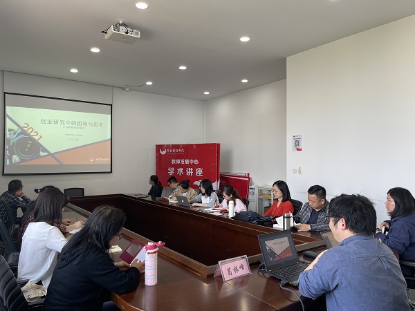 4月29日下午,教师发展中心学术讲座在南教2-412举行。本次讲座由工商管理学院葛振峰老师主讲,主题为“创业研究中的困境与思考”,来自全校共20余名教师参加。讲座由教师发展中心主任王志军主持。