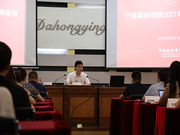校长王云儿代表学校对新教师的到来表示热烈欢迎。在“精神的力量”的主题报告中,王校长重点从“认识宁财、理解学校、希望要求”三方面进行了阐述。首先,在“认识宁财”方面,他分别从学校的发展愿景、学校精神、价值引领、人文关怀等方面进行了详细介绍。关于发展愿景,他强调,学校立足新起点,“十四五”发展的总体目标是高质量通过本科教学审核评估,力争成为硕士学位授予单位,并立志将学校建成一所具有创新示范价值、人才培养特色鲜明的高水平应用型大学。关于学校办学精神,他满怀深情地叙述了“鹰的故事”,同新教师一起回顾了学校的发展历程,并表示,学校建设者、传承者在秉承“鹰的精神”的同时,积淀形成了“百折不挠、超越自我、不断追求崇高目标”的学校精神。关于价值引领,他表示,学校在办学实践中逐步积淀形成了面向全体师生的“双创”价值理念,并以此来引领推动学校在新的起点上实现更为全面、更高质量、更可持续的发展。关于人文关怀,他指出,“尊重教师、依靠教师、服务教师、成就教师”是学校始终秉持的人本文化理念,学校始终致力于为全体教师营造舒心舒畅、温馨和谐的工作氛围,并尽最大努力提升教师幸福指数。其次,在“理解学校”方面,他认为,“认识宁财“是为了更好的理解学校,理解学校的过去、现在和将来,并希望各位新老师热爱学校,带着感情在学校工作、生活。最后,他对新进教师提出了希望与要求:希望全体新教师在今后的工作学习和生活中做到正己修身、立德树人,自信专注、知行合一,爱校荣校、和谐奋进,争当一名新时代的优秀宁财人,让宁财真正成为自己事业的舞台和精神的家园。