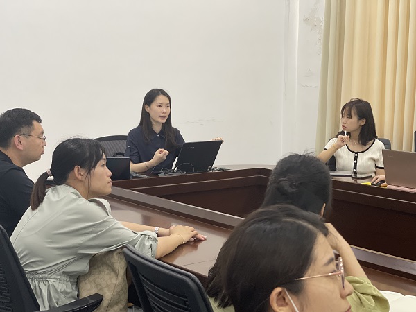 林蔚然老师结合自身刚获得浙江省“课程思政”微课专项赛文科组一等奖的切身经历和体会,向在座教师交流“思政微课制作”心得。她主要从选题、拍摄过程、制作、申报书打磨和经验体会这五方面具体展开。她认为,在选题方面,要利用作品展现课程主体,快速切入正文,在作品分析和朗诵技巧讲解时凸显思政元素,在互动练习中实现思政教育的目的;在拍摄过程中,学院提供了演播室、提字器、专业灯光和摄像等硬件设备,教师要做好课程准备、课程内容准备、形象准备和拍摄沟通等前期准备;在制作过程中,要明确需求点并仔细检查;在前期申报书撰写上,要做好专业理论知识点、思政要点和育人目标的有机结合,突出“思政”元素,不断修改完善教学设计。最后,林老师就自己参赛的经验谈了一些切身体会,给在座老师以借鉴和参考。