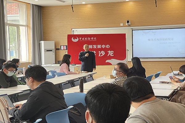 5月10日中午,教师发展中心举行第29期课程思政系列教学沙龙(总第105期)在南教2-112举行。此次讲座由金融与信息学院樊成立主讲,主题为“触及灵魂的课程思政教育——《业务流程管理》课程思政的实践与探索”,共20余位教师参加。沙龙由教务处朱凤梅主持。
