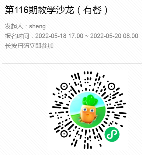 请报名参加本次活动的教师扫微信二维码填写信息,于11:30到112就餐。
