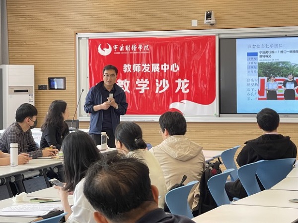 5月19日中午,第110期教学沙龙“以赛促学,以学促赛——统调大赛的课赛融合实践”在创新教学观摩空间开展,由数智信息教学团队蒋力老师主讲,全校9个教学单位近40余教师参加。