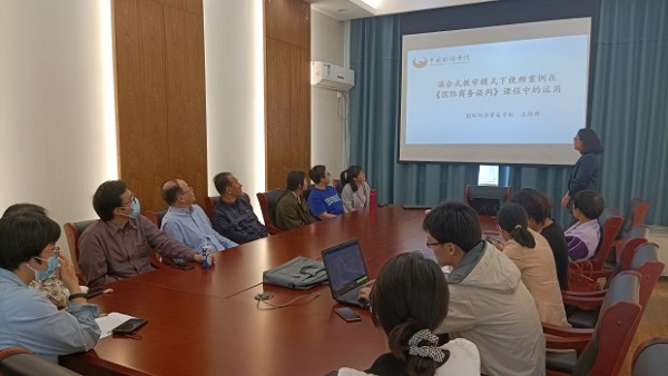 5月19日下午,教师发展中心第113期教学沙龙在南教3-102举行,本次沙龙由国际经济贸易学院左玲玲主讲,主题为“混合式教学模式下视频案例在《国际商务谈判》课程中的运用”,来自全校20余名教师参加。
