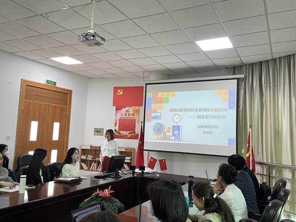 4月13日中午,教师发展中心第168期教学沙龙在北教1-301举行,本次沙龙由财富管理学院任黛藤老师主讲,主题为“游戏化教学在财会类课程中的应用——创意系列课分享”,来自全校70多位教师参加。沙龙由财富管理学院王春儿主持。