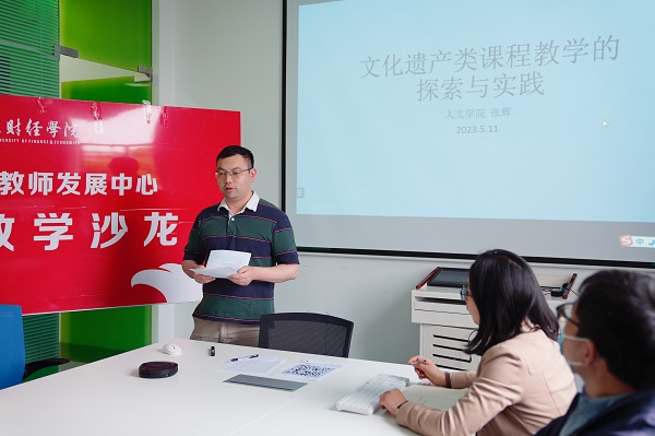2023年5月11日,教师发展中心第175期教学创新主题沙龙“文化遗产类课程教学的探索与实践”在数智课堂实验区312开展,沙龙由“鉴文思源”教学团队张辉老师主讲,采用线上线下结合的方式,参会教师达百余人。沙龙由人文学院副院长王琦主持。