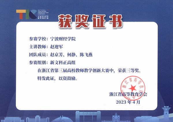 赵迎军,工商管理学院教授,硕士生导师。在教学中切实落实立德树人根本任务,始终坚持以学生发展为中心,在课堂上注意激发学生学习的主动性,不断加强双向互动,促进教师导和学生学的有机结合。针对创业型管理人才的特质,以产教深度融合、协同育人模式,构建了“基础认知、项目强化、模拟演练、创业实战”“四阶递进”式人才培养模式,获得宁波市高等教育教学突出成果奖一等奖。主持建设的《创业实践与实战》课程获得首批国家级一流课程,主持编写的《创业基础理论与实践》教材获得浙江省本科高校“十四五”首批新工科、新文科、新医科、新农科重点教材建设项目立项;获得浙江省民办学校优秀管理工作者,浙江省“三育人”岗位建功活动先进个人,浙江省第三届高校教师教学创新大赛三等奖等多项荣誉。