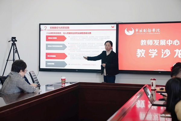 12月14日中午,教师发展中心第212期教学沙龙在南教1-412举行,此次沙龙由财富管理学院王春儿老师主讲,主题为“新文科背景下财会类专业课程思政实施路径与改革实践”,来自全校40多位教师参加。沙龙由教师发展中心王志军主持。