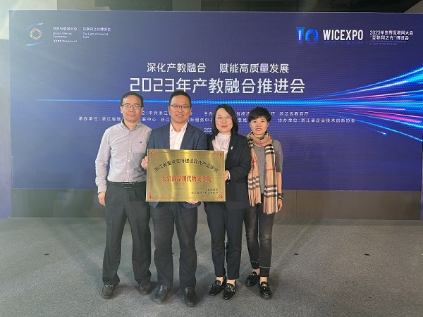 浙江省经信厅党组副书记、副厅长、一级巡视员王忠民和浙江省教育厅高等教育处处长、二级巡视员、学位办主任吕华分别在会上致辞。随后,由委人才办、省经信厅、省教育厅领导为浙江省第二批现代产业学院授牌。推进会上,省经信厅数字经济处处长董钊详细介绍了浙江省数字经济创新提质“一号发展工程”。来自浙江理工大学纺织新材料现代产业学院和浙江科技学院机器人产业学院的代表则从建设基础、育人模式、建设特色和建设成果等方面分享经验,与参会人员进行交流。