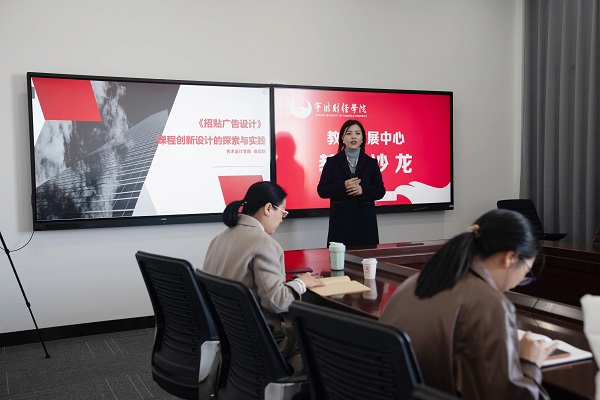 11月24日中午,教师发展中心第206期教学沙龙在数智课堂实验区416举行,此次沙龙由艺术设计学院俞奕秋主讲,主题为“《招贴广告设计》课程创新设计的探索与实践”。沙龙采用“线上+线下”形式展开,线上线下共110余位老师参加。沙龙由艺术设计学院梁伟主持。
