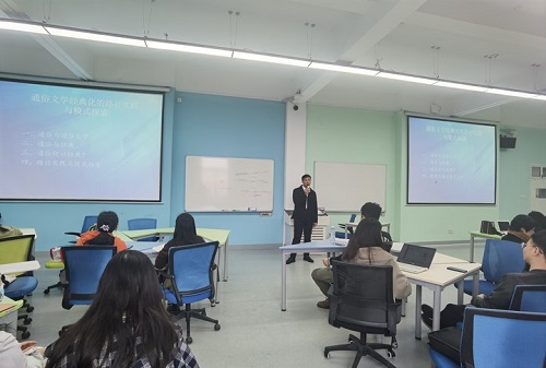 11月17日下午,由教师发展中心主办的讲座在南教1-306举行,本次学术讲座的主题为“通俗文学经典化的路径实践与模式探索”,由人文学院赵海涛主讲。来自全校30余位老师参与了本次活动,讲座由人文学院王琦主持。
