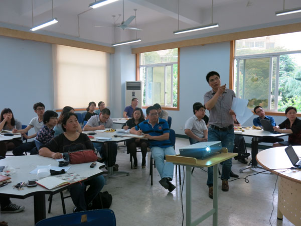 5月26日15:00,教师发展中心第五期主题学术沙龙在集团大楼208研讨室举行。本次学术沙龙由教师发展中心副主任王志军主持。现教中心叶伟剑老师作了主题为“翻转课堂:翻什么转什么坚守什么?”的精彩报告。 首先,叶伟剑老师从翻转课堂起源、学习流程、课堂环境、学习责任等翻转以及翻转课堂的实施成效和实施范围等方面阐述了翻转课堂面面观;其次,他从八个方面提出了对翻转课堂模式的理解,认为翻转课堂是让学生对自己学习负责的环境;是所有学生都积极学习的课堂;是增加师生互动和个性化接触时间的一种模式;是混合了直接讲解与建构主义学习的模式;是让所有学生都能得到个性化教育的模式;老师是学生身边的“教练”、不是在讲台上的“圣人”;是课堂的内容得到永久存档,可用于复习或补课;是学生课堂缺席,但不被甩在后面。 最后,在座教师针对叶伟剑老师主题纷纷发表自己的观点,学术沙龙气氛活跃,讨论热烈,取得了如期效果。      |