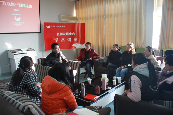 11月26日下午3点,教师发展中心学术讲座在14号教学楼509学术研讨室举行,本期学术讲座由我校电商学院副院长邹华胜副教授主讲,主题为《互联网+引领未来》,来自全校的二十余名教师参加了本次学术讲座,讲座由教师发展中心副主任王志军主持。