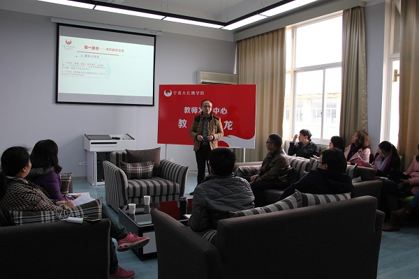 沙龙中,李老师主要从翻转背景、翻转基础、改革思路和设计方案四方面来介绍他的主题。李老师对翻转课堂的教学改革思路着重强调“三三三”,即 “三类”学习任务设计、 “三环节”教学互动设计、“三维度”二主体教学评价设计。李老师“三三三”式的翻转课堂课程设计引起了大家的兴趣与共鸣,在座的老师纷纷就其中的细节向李老师提问,李老师一一给予耐心的解答。整场沙龙气氛热烈,讨论积极,使得大家对翻转课堂的教学落地与实施有了切实的认识,为进一步开展翻转课堂教学提供了全新的视角和参考。