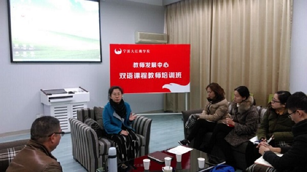 交流会上,有四位学员做了主题汇报,分别是顾冰洁老师的《基于“输出驱动—输入促成假设”的大学英语教学探究》、苏赛尔老师的《<个人理财>教学设计》、楼沁沁老师的《<国际市场营销学>翻转课堂教学设计》以及郦齐老师的《<心理学基础>教学设计》。各位老师的汇报完毕后,在座的学员纷纷对他们的发言内容进行献言献策,各抒己见。通过这种经验交流的方式,使得我校双语课程教师在教学设计、教学研究等方面有了更为深入的理解,为进一步提高双语课程的教学和研究水平打下了良好的基础。