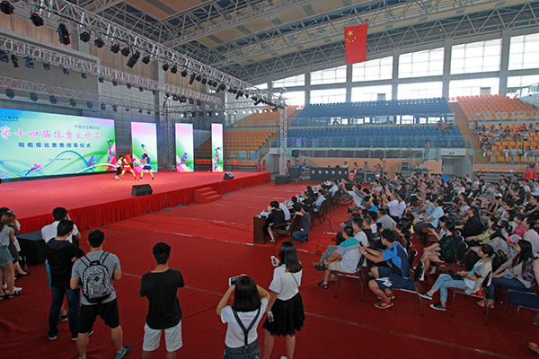 6月17日下午,我校第十四届体育文化节啦啦操比赛暨闭幕式在体育馆主馆举行。校长助理许锁迪、何秋叶出席仪式,参加闭幕式的还有相关职能部门、各学院党委有关负责人,各分工会代表及各学院学生代表等。