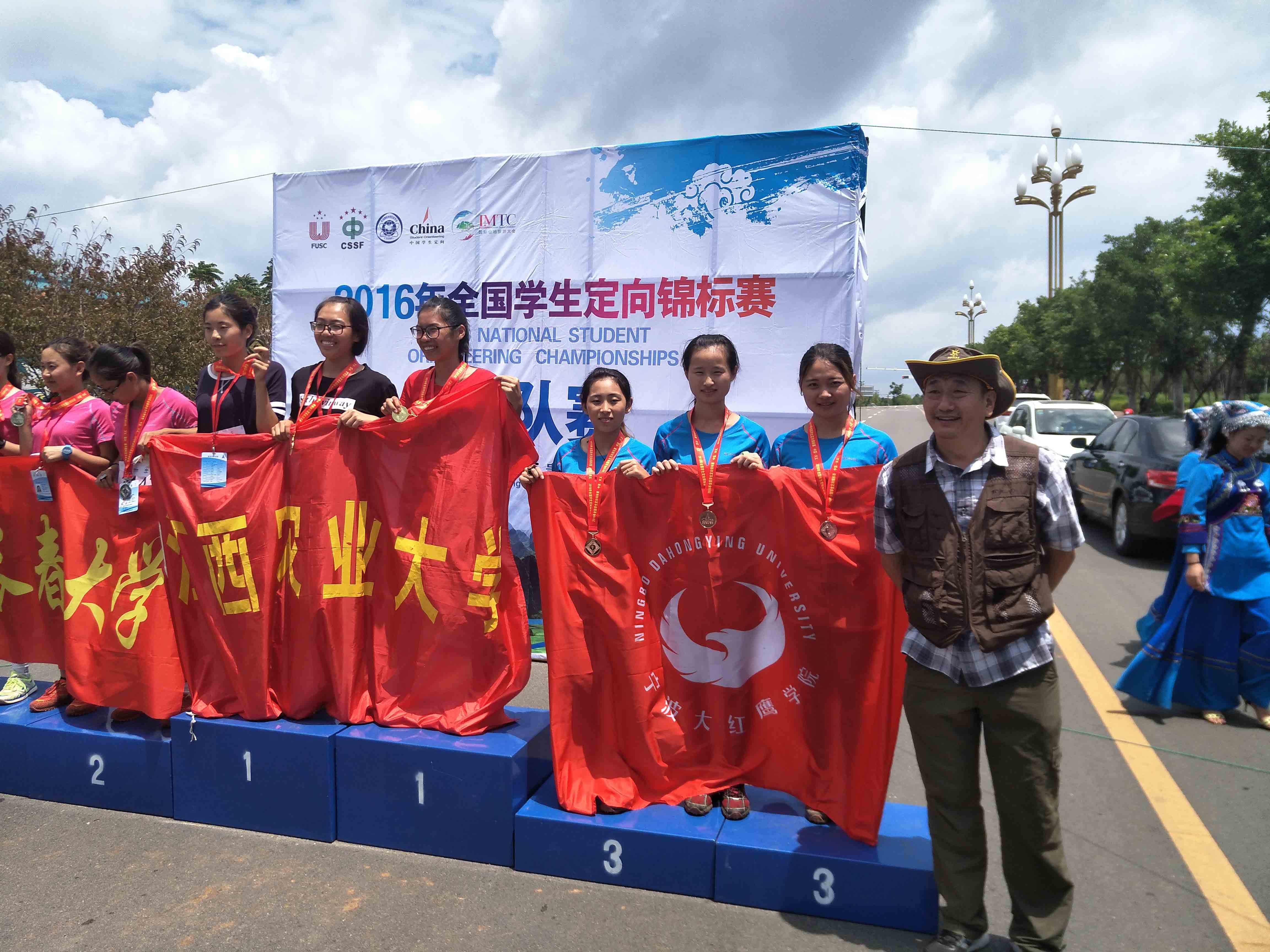 近日,在中国大学生体育协会主办的2016全国学生定向比赛中,我校由邢立付老师指导的定向运动代表队取得优异成绩,我校在本届比赛中获得“体育道德风尚奖”,邢立付被评为“优秀教练员”,毛慧平同学被评为“优秀运动员”等荣誉称号。其中,倪轲同学荣获本科男子乙组积分赛第二名、短距离赛第三名,陈晶晶同学荣获本科女子乙组短距离赛第二名,许佳燕、陈晶晶、毛慧平荣获团队赛第三名,女子团体总分第三名,团体总分第五名。