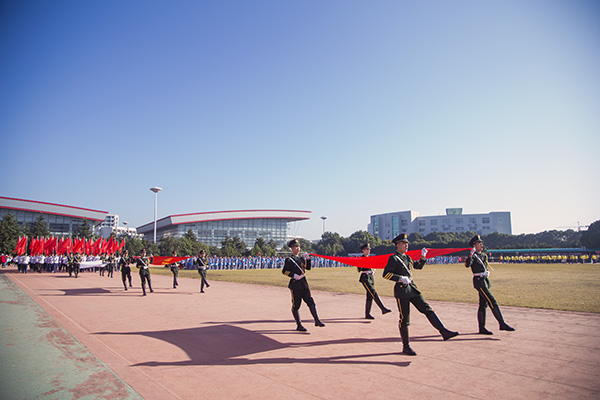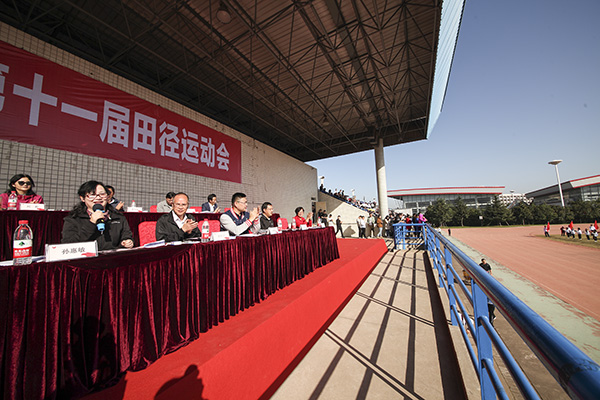11月9日,我校第十一届田径运动会盛装开幕。校领导孙惠敏、林长兴、李羽、沈云慈、许锁迪、高振强、蒋天颖、何秋叶出席,各二级学院、有关职能部门负责人,各单位师生运动员代表以及大会裁判员、工作人员参加开幕式。开幕式由副校长李羽主持。